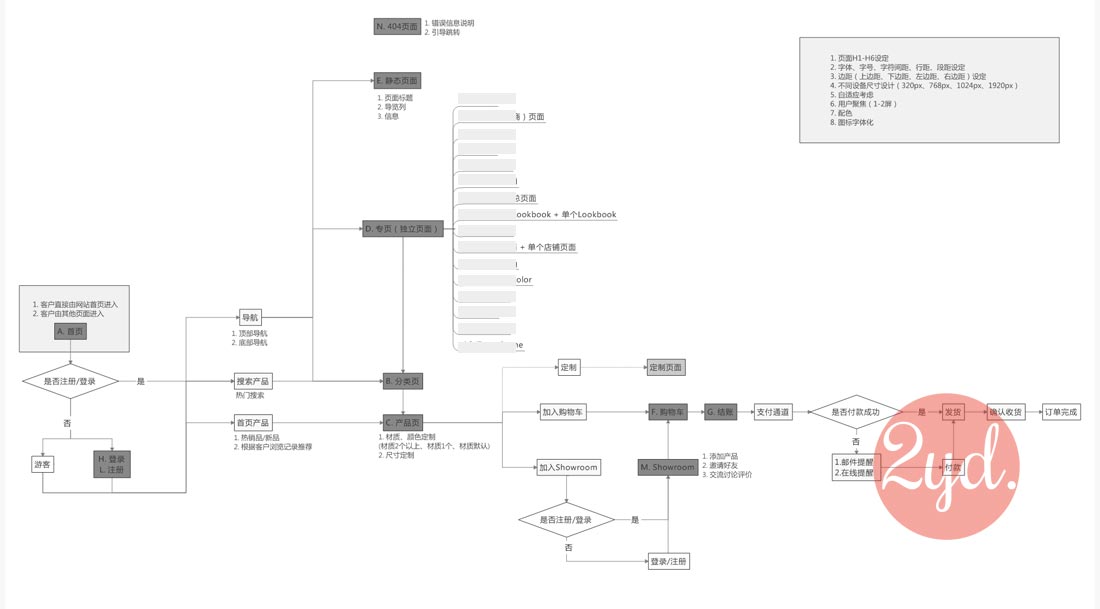 项目背景: Aniia是一个以高端婚纱销售为主的品牌,少量SKU,价格偏高,主要针对欧美的批发及零售。 竞品分析: 涉及其他品牌信息,这里不做赘述。 流程图: 原型图-手机端为例: UI设计: WEB, 产品/交互/UI 上一个下一个